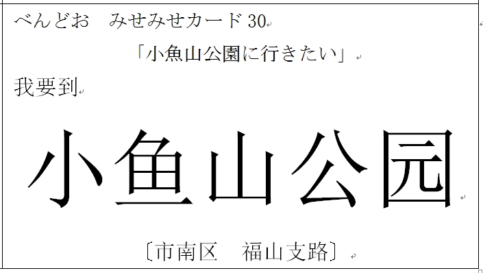 みせみせ♪べんどおカード 「小魚山公園に行きたい」