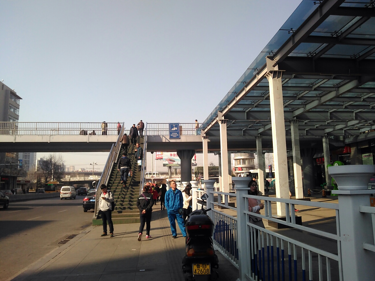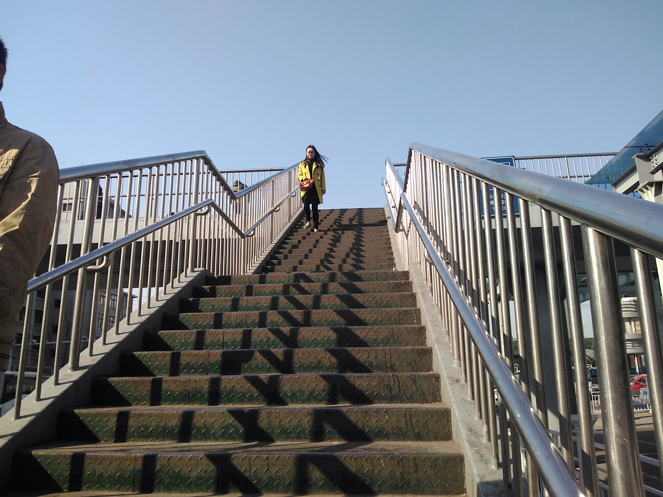 バスを降りたら、左に2階へ行ける連絡橋の階段。