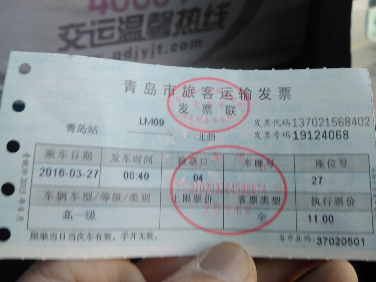 チケット購入。今回は即墨のひとつ手前の城陽区へ。城陽区「大北曲」の家佳源ショッピングセンターまでなら11元(他のバスターミナルなら10元)。