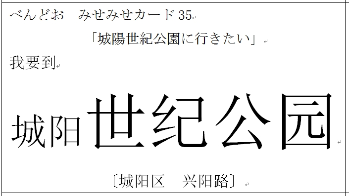みせみせ♪べんどおカード 「城陽世紀公園に行きたい」