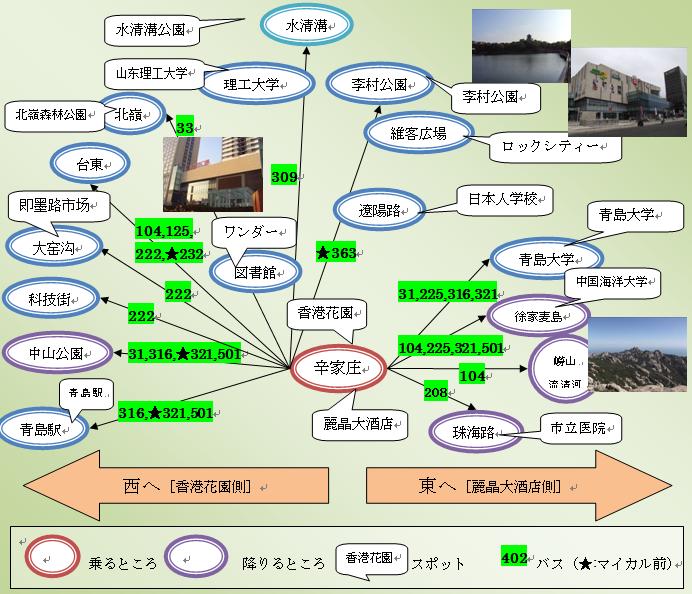 青島市内バスの行先やコースについては、以下の方法で確認できます。