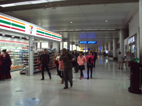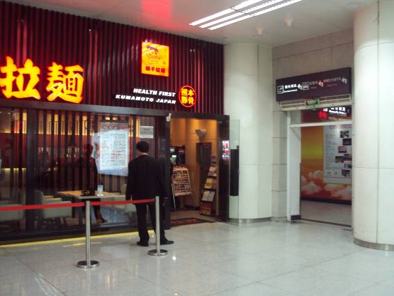 空港についたら、右を見よう。一番奥に「味千ラーメン」の看板が見えるので、それを目指して、前進。