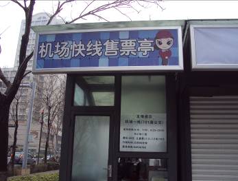 空港バスのチケットは、以下の場所で購入することができます。1人20元です。空港バスのりばは、そのチケットを買ったところにあります。