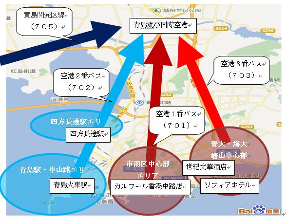 <嶗山区青島大学・中国海洋大学エリアから行く場合>