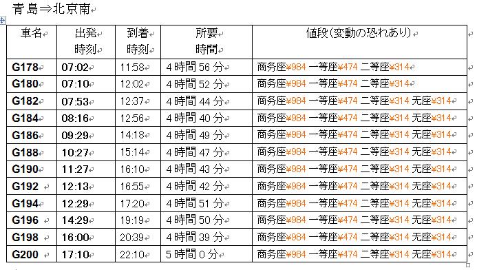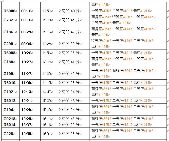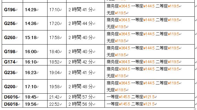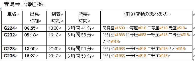 ※切符の値段は、日によって変動する恐れがあります。ご了承ください。 参考サイト 『同程旅遊』http://www.ly.com/huochepiao/train/