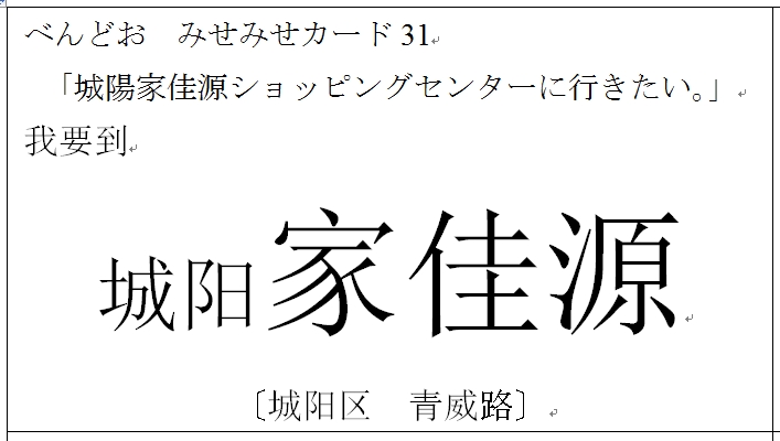 みせみせ♪べんどおカード 「城陽家佳源ショッピングセンターに行きたい」