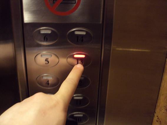 エレベーター来たら、13階を自分で押して「上に参りま~す」